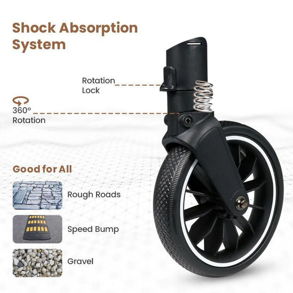 Link Brakes with Suspensions : Keep the stroller in control with rear link brakes. Street Smart Stroller also strolls so comfy with suspension systems in wheels.