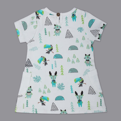 White Forest Printed Half Sleeves DressWhite Forest Printed Half S...