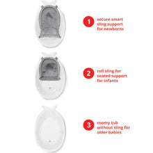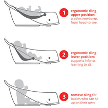 - Quick-drying mesh and comfort-edge construction securely cradles baby from head-to-toe. The slings adjusts to a cushioned seat that comfortably supports babies learning to sit. Remove the sling when baby has mastered sitting and easily bathe baby in the spacious tub—no uncomfortable plastic bumps.