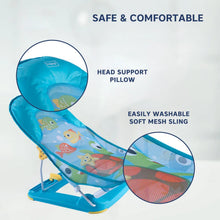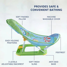 - The three levels of adjustable backrest allow for both sitting and reclining positions, catering to your baby's needs as they grow. Made with a soft mesh sling that conforms to your baby's body, this bather offers unparalleled comfort, making bath time a joyful experience for your little one. The machine-washable fabric ensures easy maintenance, allowing you to keep it clean and hygienic for your baby's use. The solid anti-skid base provides stable support, ensuring safety while bathing your baby.