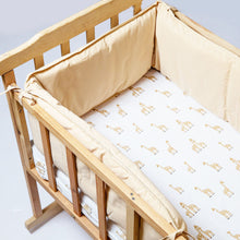 Our organic cotton reversible Bumpers act as cushions when babies roll to the sides and protects them from sliding their hand or legs between the rails.The fitted crib sheet come with elastic on the sides to keep the sheet in place.