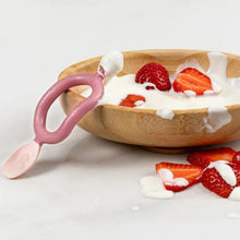- This means the baby can see their food on the spoon, developing their hand-eye coordination when practicing bringing food to their own mouth.