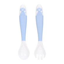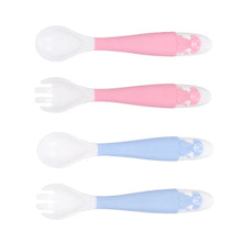 The fork and spoon are BPA free, food grade material, completely safe for the kids to eat by themselves.