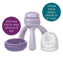 Simply twist the easy click-lock ring to open, fill the silicone feeder with food, pop it back on and enjoy!