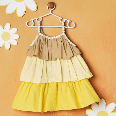 Yellow Layered Cotton Sleeveless DressYellow Layered Cotton Sleev...