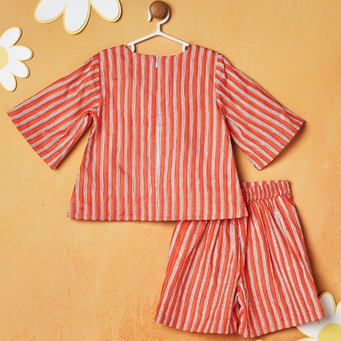 Orange Bell Sleeves Striped Top & Shorts Co-Ord SetOrange Bell Sleeves Striped...