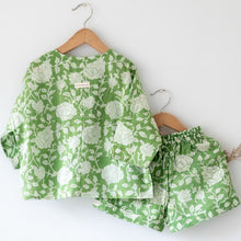 A full sleeve unisex kimono style mul mul cotton shirt and shorts co-ord set for ultimate comfort in summers. Use the set as it is or as separates.