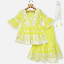 Get this cutest kurta and pant set for your little doll this festive season. This girls ethnic set is perfect for this festive season and will keep your little damsel comfortable in this cotton dress. Style it with hair clip and jutti and complete the look.