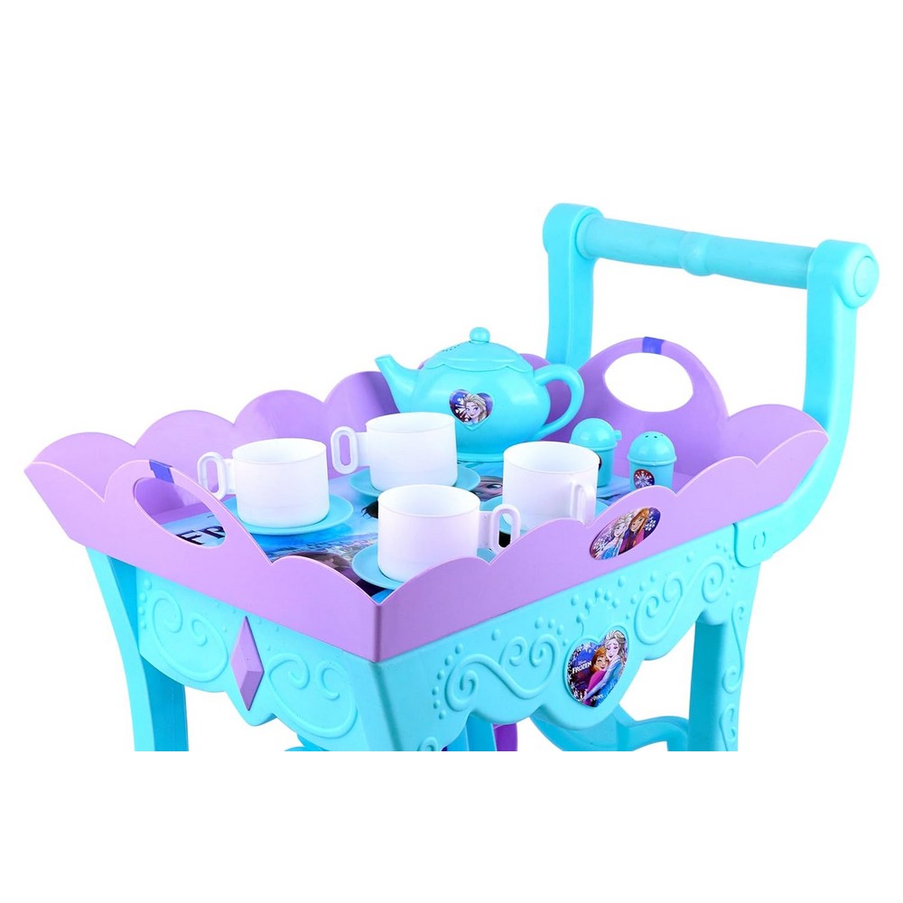- The set includes a trolley with fold-down sides, 4 mini teacups and saucers, a teapot, sugar bowl, creamer, and 32pieces of pretend and play. Children will enjoy playing restaurant or having pretend tea parties with their toys. All the pieces are sized for small hands to encourage role playing and learning social and motor skills.