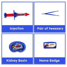 - This colour coded set comes with 15 varied medical instruments and medicines that can be played by budding doctors in role playing games. This set is brought together to harness the child with an aspiration towards medical sciences and to instill a sense of care towards everything around them.