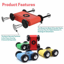 - Set of 4 Mini Wooden Cars: Includes four robust wooden mini cars, each associated with a colour and number, promoting colour recognition and logical thinking skills in children.