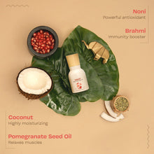 - Key Ingredients- Sesame Oil, Sunflower Oil, Coconut Oil, Wheat Germ Oil, Brahmi Extract, Avocado Oil, Morinda Citrifolia Leaf Extract, Cassia Alata Extract, Licorice Root Extract, Nirgundi Extract, Holy Basil Leaf Extract, Rosemary Oil, Pomegranate seed Oil, Lavender Oil