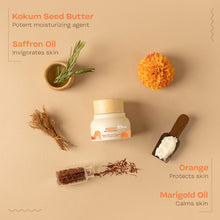 - Key Ingredients-Shea Butter, Cocoa Butter, Moringa Seed Oil, Kokum Butter, Coconut Oil, Orange Oil, Wheat Germ Oil, Coriander Extract, Saffron Oil, Vetiver Oil, Marigold Oil, Rosemary Oil
