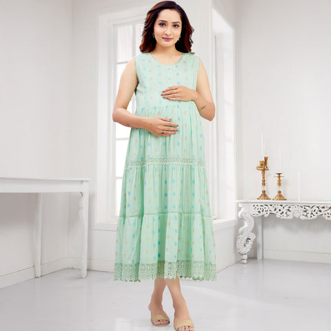 Yellow & Pista Geometric Printed Half Sleeves Nursing Maternity Cotton DressYellow & Pista Geometric Pr...