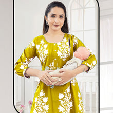 - This elegant and comfortable co-ord set is suitable for expecting moms and new moms. The gathered kurta creates plenty of movement, draping elegantly over a bump or skimming over a post-baby belly. The concealed zip closure for easy dress feeding. Whether you're running errands or simply relaxing at home, this set will become a favorite in your wardrobe.