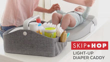 - e light on middle-of-the-night diaper changes with our modern diaper caddy! The handle shines softly with a touch sensitive light and a 10 minute auto-off feature.