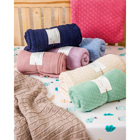 Ivory Cotton Knitted AC Blanket With Cuddle Cloth SetIvory Cotton Knitted AC Bla...