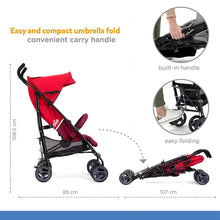- Lights out flat recline and SoftTouch harness welcome the tiniest riders. Upgraded umbrella fold buggy includes a secure fabric covered armbar and eyeshade. Lightweight frame, compact umbrella fold, and convenient carry handle make this one less load to lug.