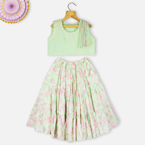 Green Top With Floral Tiered GhagraGreen Top With Floral Tiere...