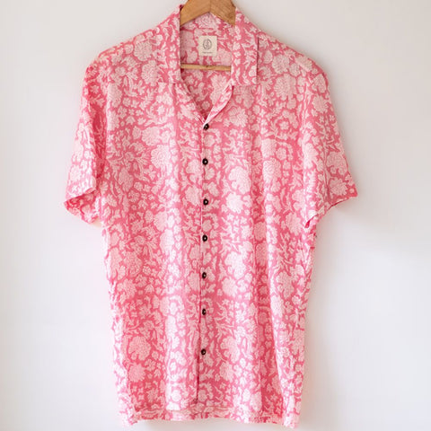 Pink Floral Hand Block Printed ShirtPink Floral Hand Block Prin...