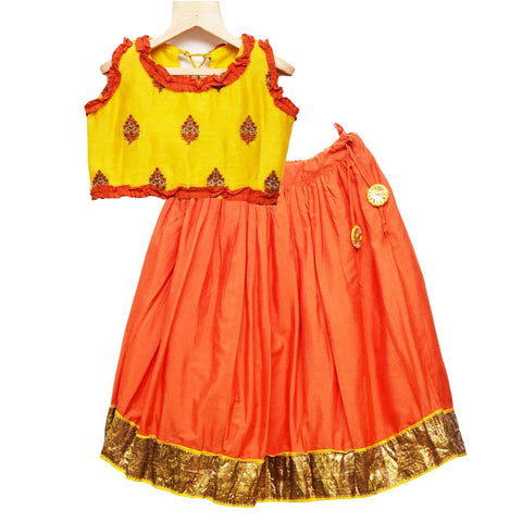 Yellow Embroidered Work Top with GhagraYellow Embroidered Work Top...